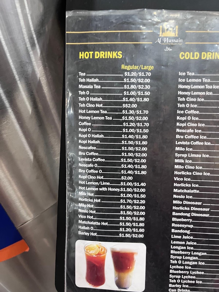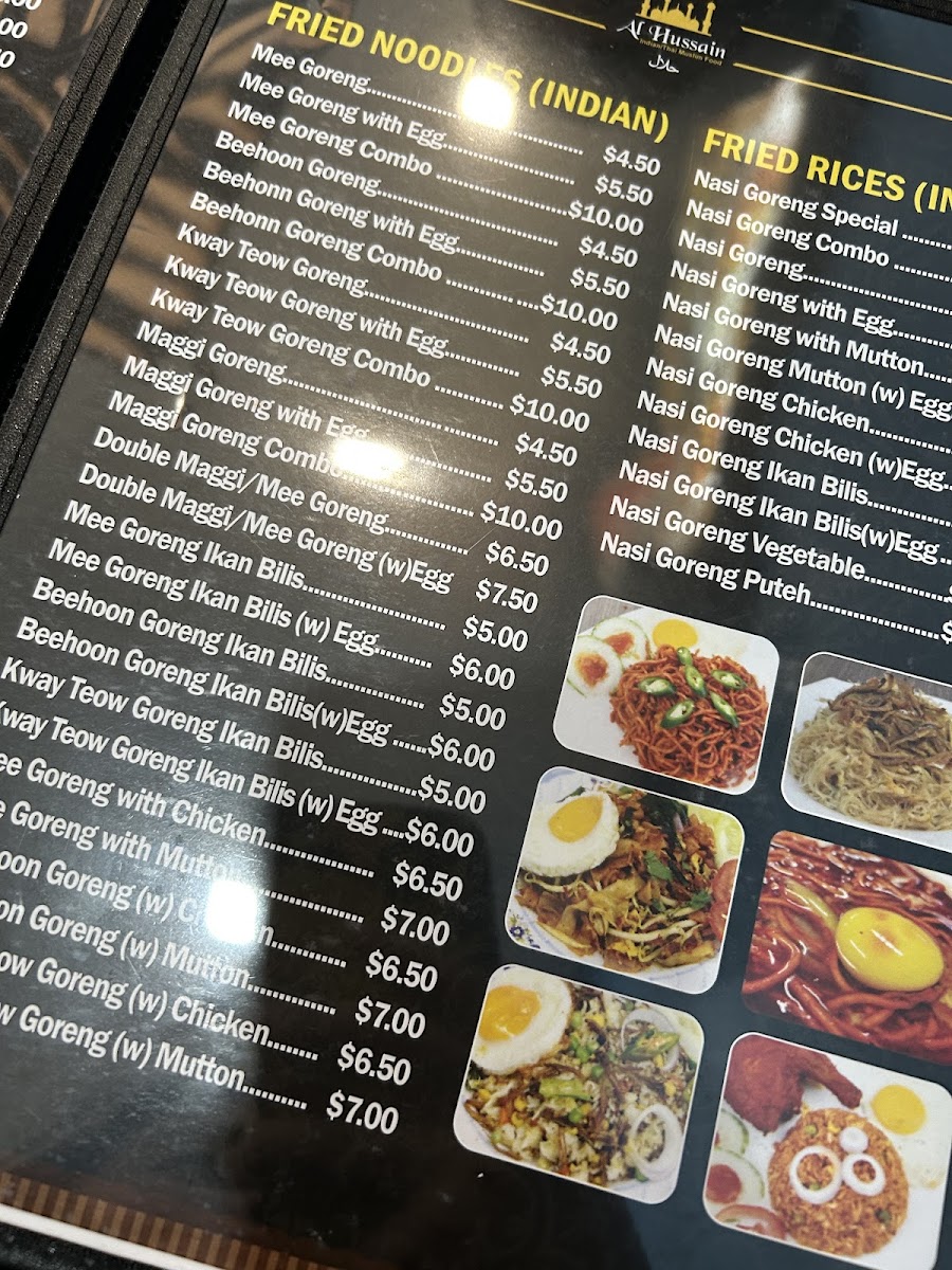 The menu at Al-Hussain Restaurant offers a comforting blend of familiar favourites and hearty dishes from Indian, Malay, and Thai influences, presented in a casual mamak-style setting. It’s the kind of place where you can enjoy simple, satisfying meals throughout the day, whether you're stopping by for a morning prata breakfast, a late-night snack, or a relaxed family dinner.